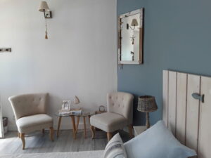 Chambre d’hôtes avec entrée indépendante, équipée d’une salle de bains et d’un WC privés, d’un lit en 160cm, d’une clim réversible, d’une télévision et du wifi.